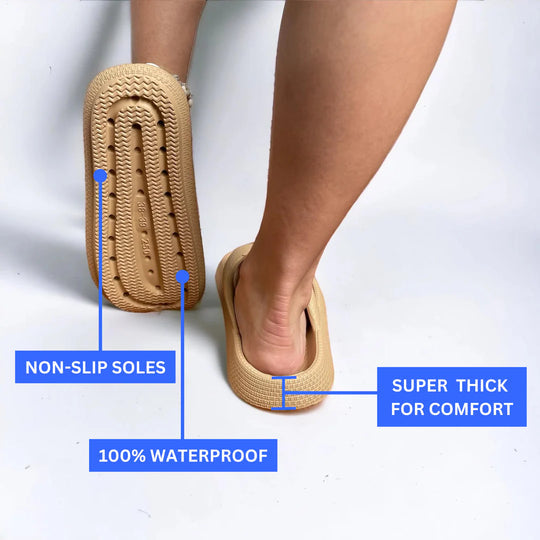 The Qomfort Pillow Sandals feature an orthopedic design with a 15° angle from toe to heel, evenly distributing pressure from your feet to your hips.You'll notice immediate alleviation of discomfort in your feet, ankles, knees, and hips.